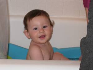 Although it has seemed like he has been teething for about 2 months now, it wasn’t official until Thursday. His bottom two center teeth are now coming in. They are hard to see, but when he chomps down on your fingers, there is no doubt they are there. It seems like his top two center teeth are getting ready to cut thru any day now as well. So far he has managed any pain well… lets hope it stays that way. I’ve been telling Matthew that as the teeth come in, the food gets better. I know he can’t wait to throw down his first bagel!