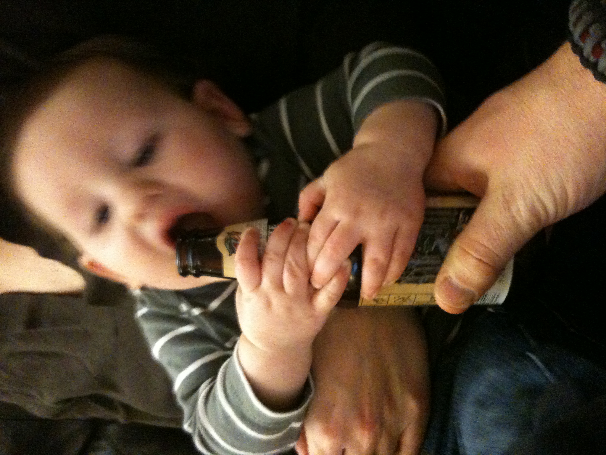 Yes, thats right. Father of the year over here accidentally let Matthew take a swig of some smooth white ale. What can I say, I should have been paying closer attention. Since he was teething, he was chomping down on the top of the bottle. Very little was left, maybe an ounce, but Matthew managed to grab it out of my hands and tried to chug it before I could get it back from him.