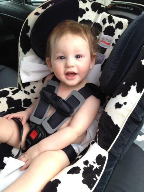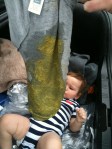Somehow we managed to clean the mess-o-potamia (as best we could) and they didn’t even kick us out of the store. Quite the opposite, we were pushed through to the front of the line where we quickly checked out. Others were nice enough to understand as they were regaling us with stories of their own youngsters’ pooptastrophes. However we had another situation to deal with- no change of clothes and a brand new car seat.