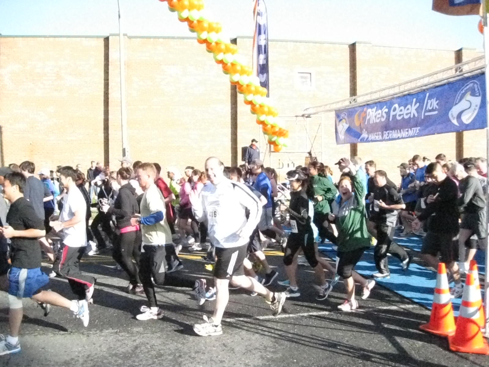 I have all kinds of thoughts randomly running through my head. It’s out of control and I have a hard time focusing. People watching is somewhat of a sport to me… and there is quite a cast of characters at these events. There were also some familiar faces. But now I needed to settle down and settle in and think about the result I wanted. Publicly I had stated that I hoped to finish under an hour and seven or eight minutes. Privately I was planning on crossing the finish line at an hour and five minutes or less. Want to take a guess at which happened? See the previous paragraph where I talk about how competitive I am.